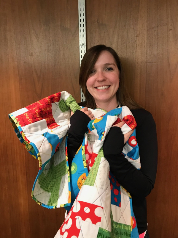 Winners of the fat quarter bundle prize for the revenue raffle and the name tag raffle prize were presented with their prizes.