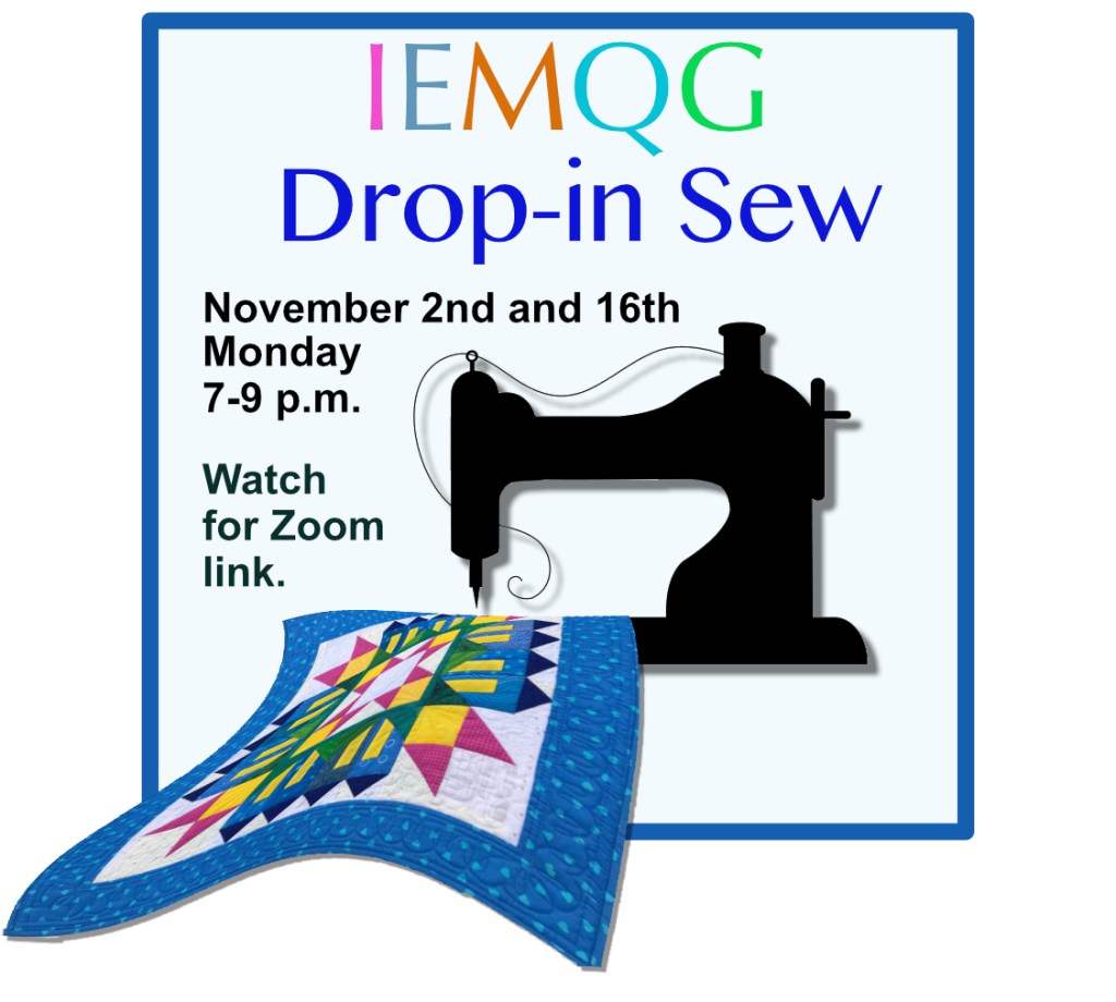 Our Guild provides us a chance to find our tribe, so to speak, so if you want to come and hang out with a few of the quilters, we now have Drop-in Sew. Our dates for November are both Mondays: the 2nd and the 16th, from 7-9 p.m. Watch for your Zoom link!
