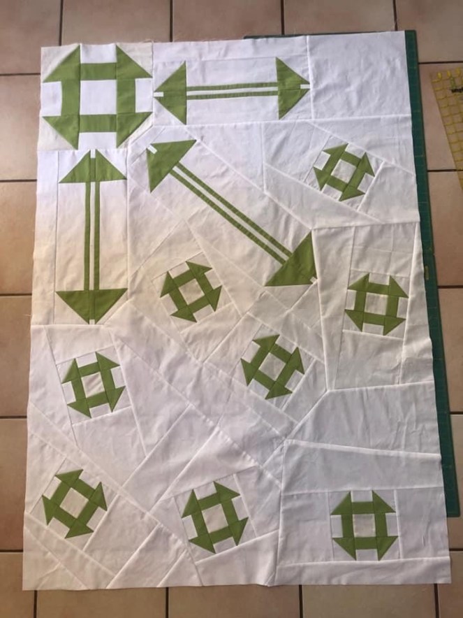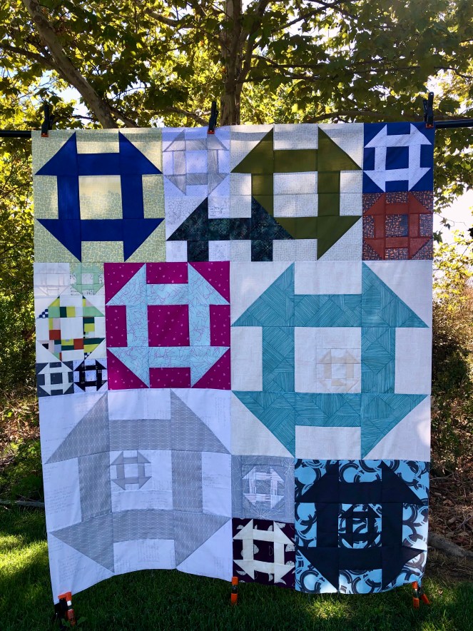 I did the challenge!!! This was a great way to wrap up Lynn’s series on modern quilting. The top is 47″ by 41″ a little smaller for me.