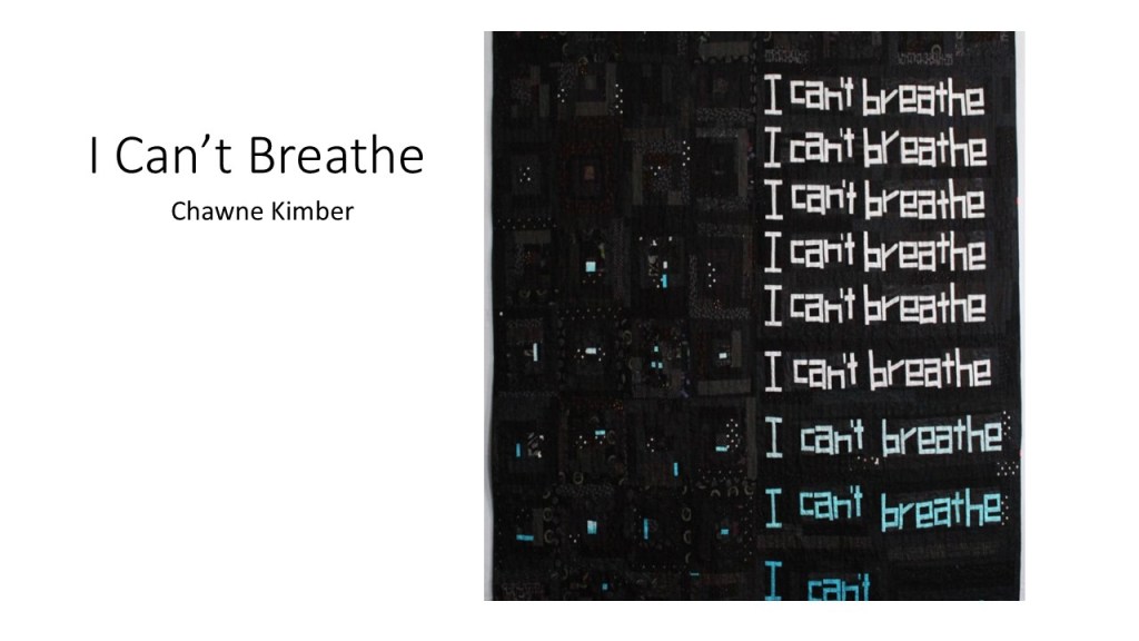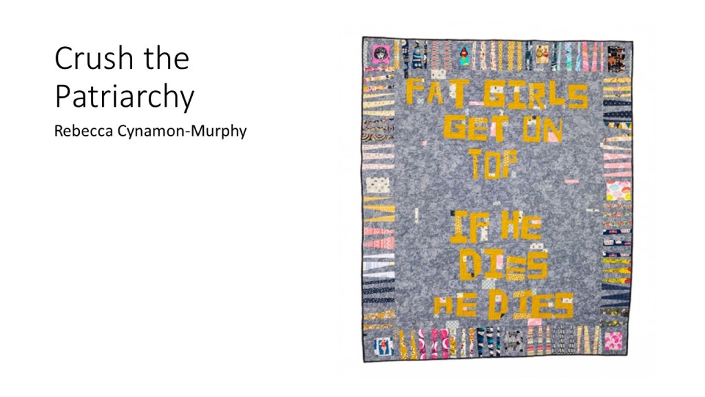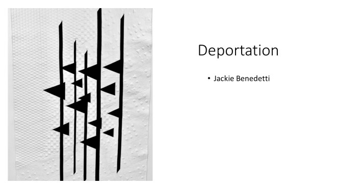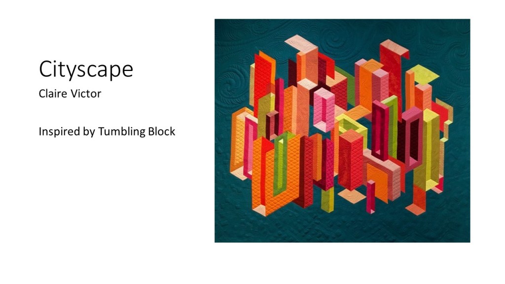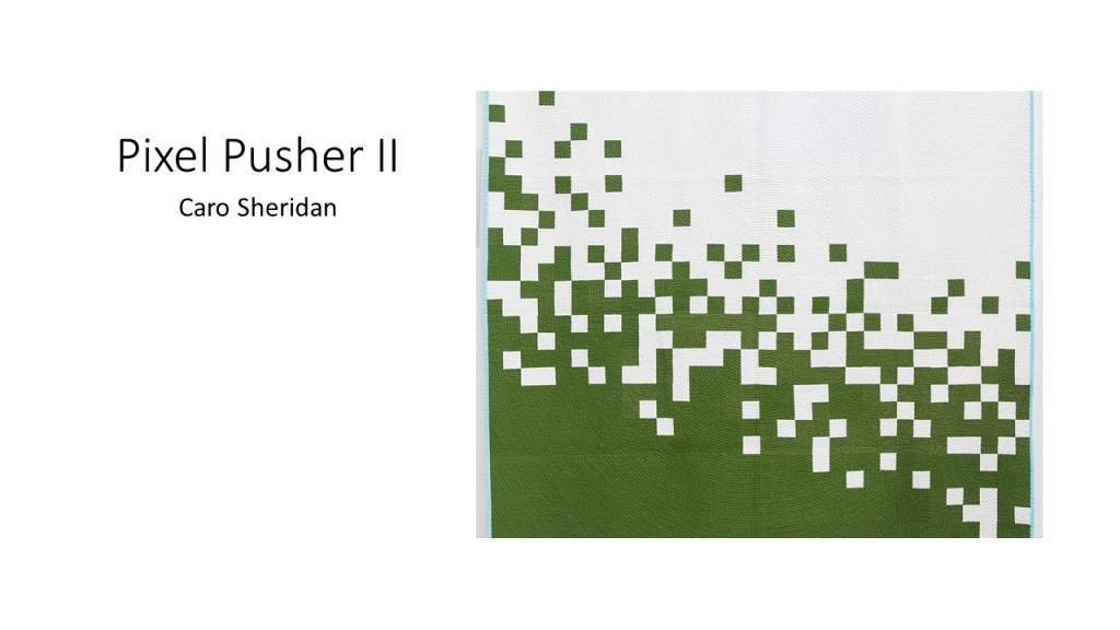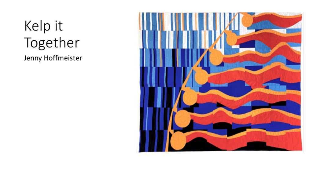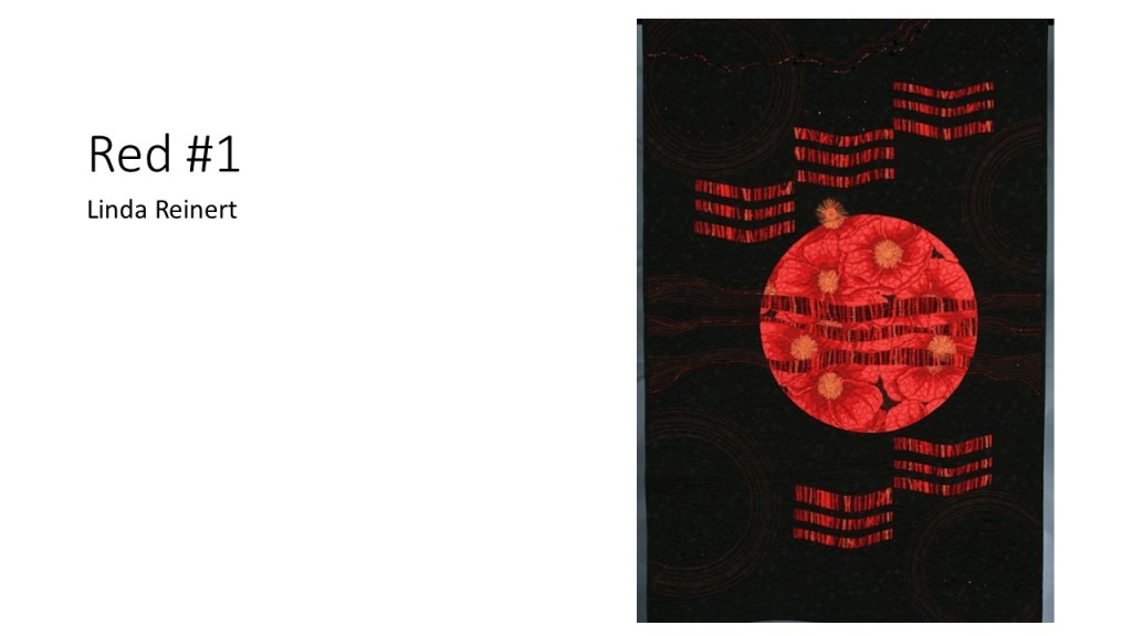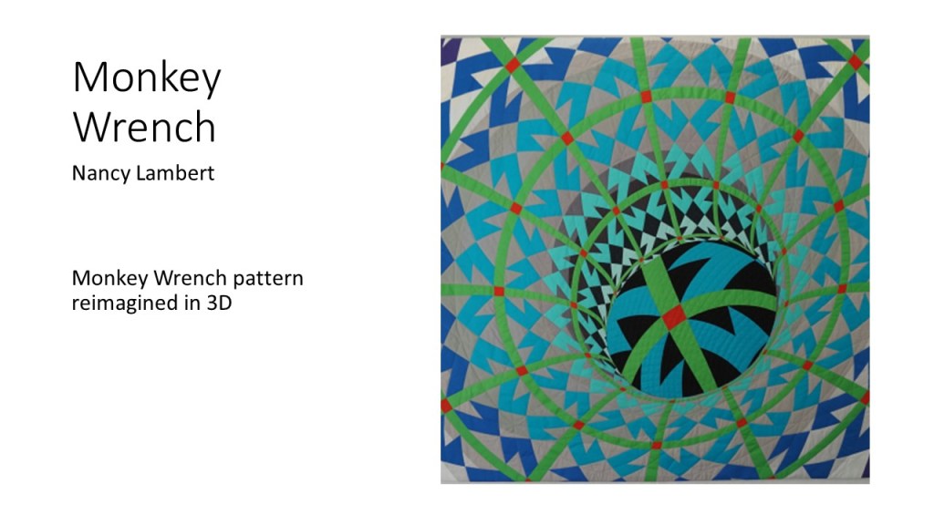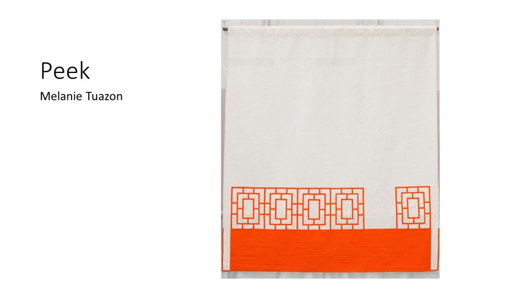 “Improvisational compositions in quilting are similar to improv in jazz music; making things up on the spur of the moment and feeding off each other’s energy. Start with two pieces of fabric and sew them together. Maybe you like the colors together or the shapes created. You don’t know exactly what the final design will look like. Once the process begins, each choice of color or shape influences the next.” – Cindy Gisdela