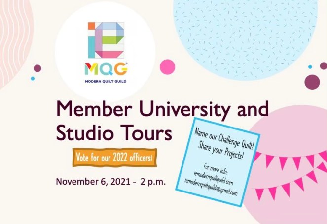 We will be casting our vote for the 2022 executive board. If you’d like to run for a board position there is still time to be added to the ballot. Please email us at iemodernquiltguild@gmail.com.