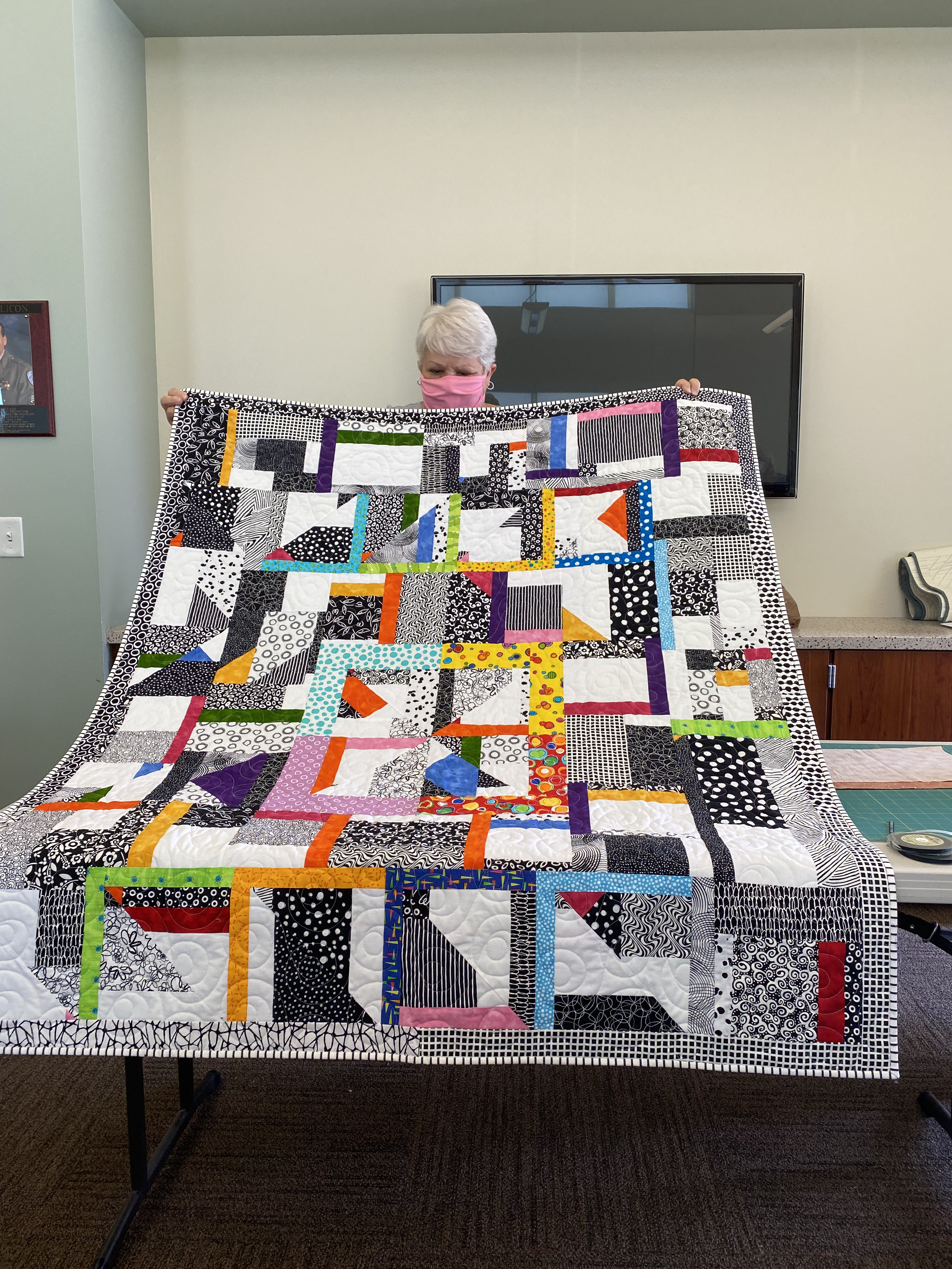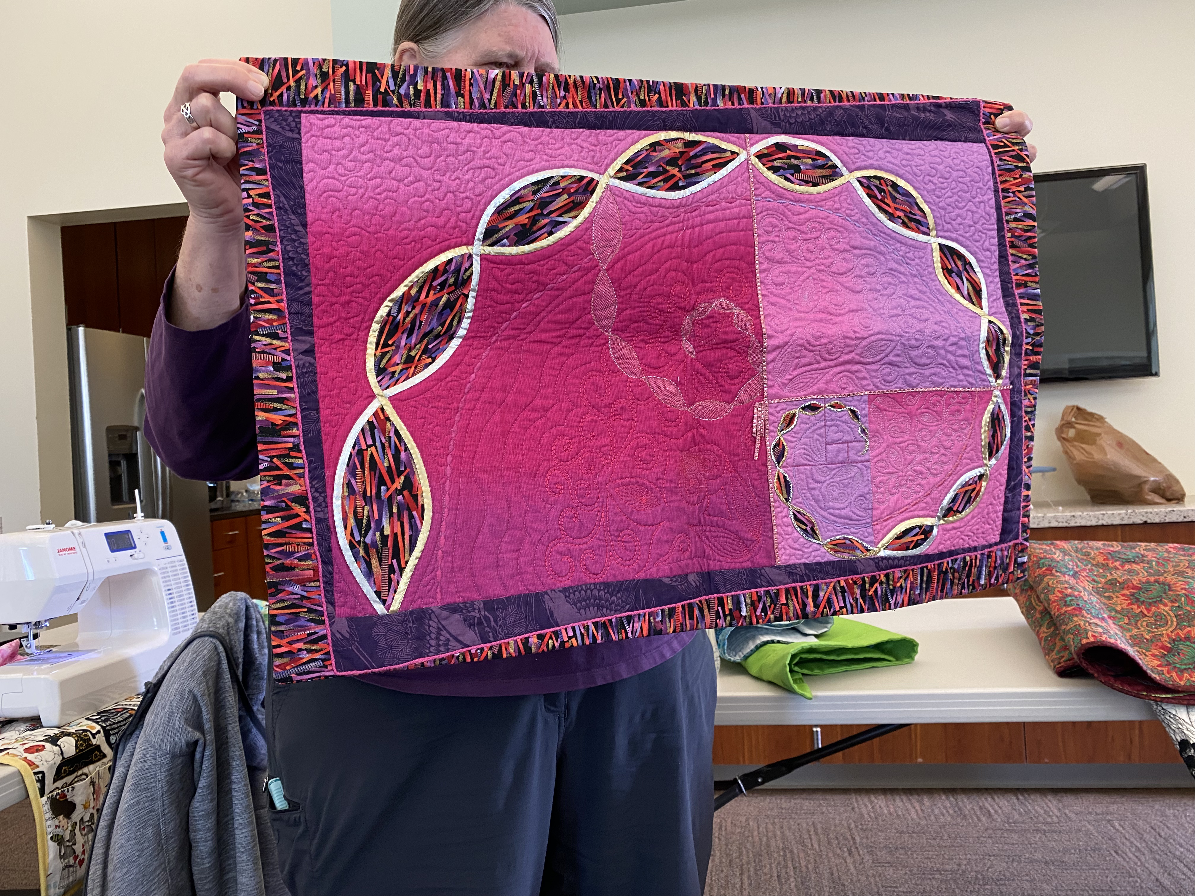 Some of our talented members showed quilts with curves. Lots of inspiration for the Round About Challenge.