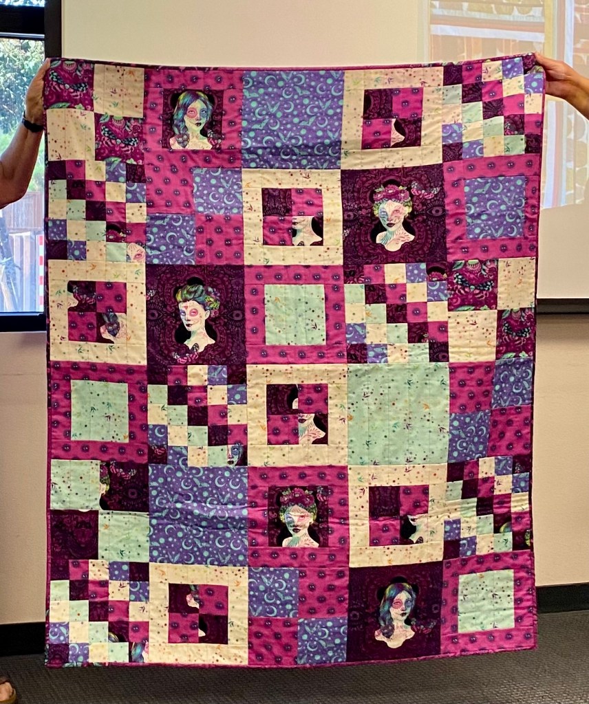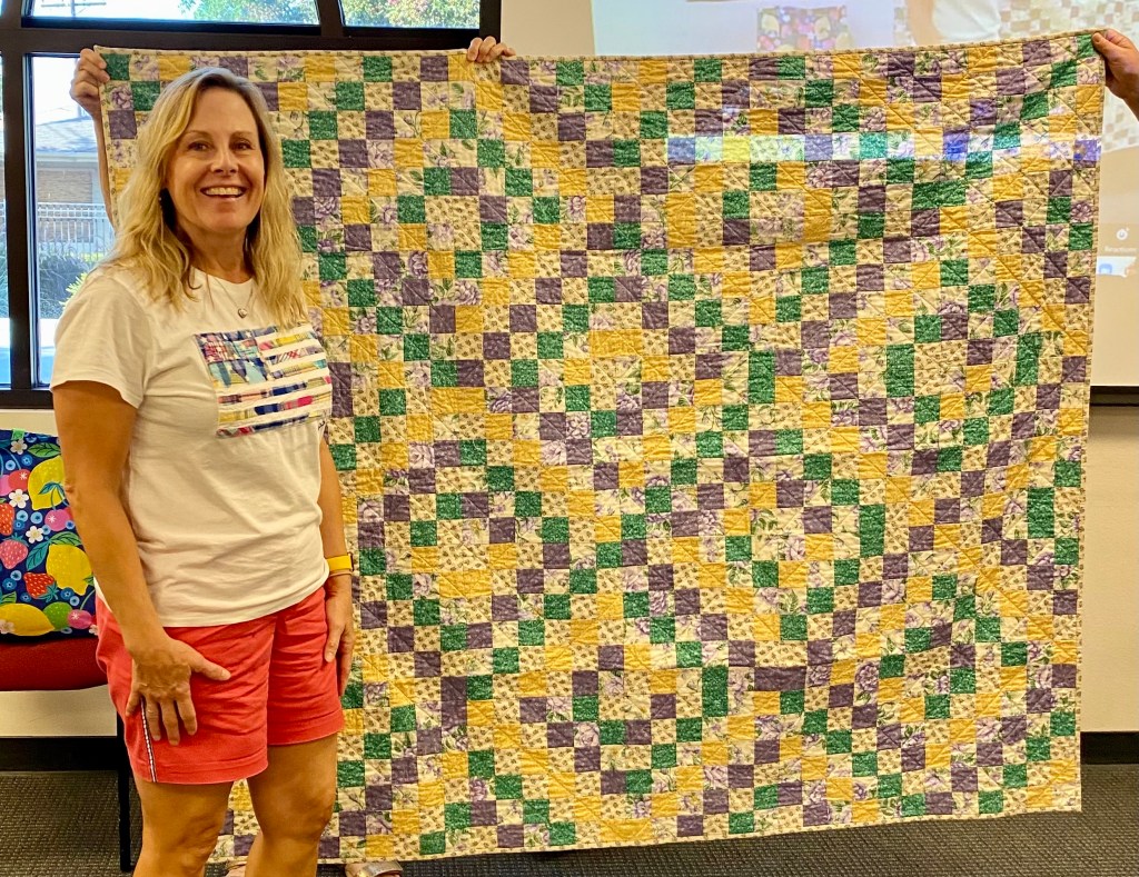 Our September meeting started out with some helpful scrappy quilting tips. Scrappy quilts are a great way to fully utilize your stash and play with contrast, value and color. While we generally think of scrappy quilts as vintage or traditional, scrappy quilts can definitely be modern. To get some Scrappy Quilting Tips click here.