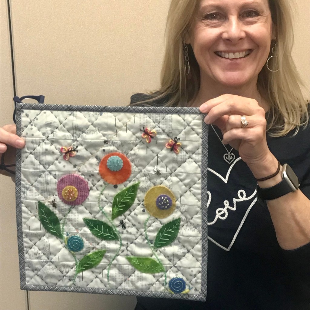 We had record attendance at our meeting this month, about 20 people in person and 20 on zoom! It was so much fun to see everyone. We had several new members in attendance and some guests as well. Our speaker, Carolina Oneto, was a real treat! Carolina is a wife, mother, civil/industrial engineer, and an award winning modern quilter who has immersed herself in the study of the principals of art. She is well know for her colorful quilts and she gave us a terrific lecture on “The Power of Color.” She overwhelmed us with beautiful examples of color inspiration and she shared how color can be used to influence the elements and principles of art. She graciously provided us with an outline of her presentation. Members can access it in Member’s Corner on our website.