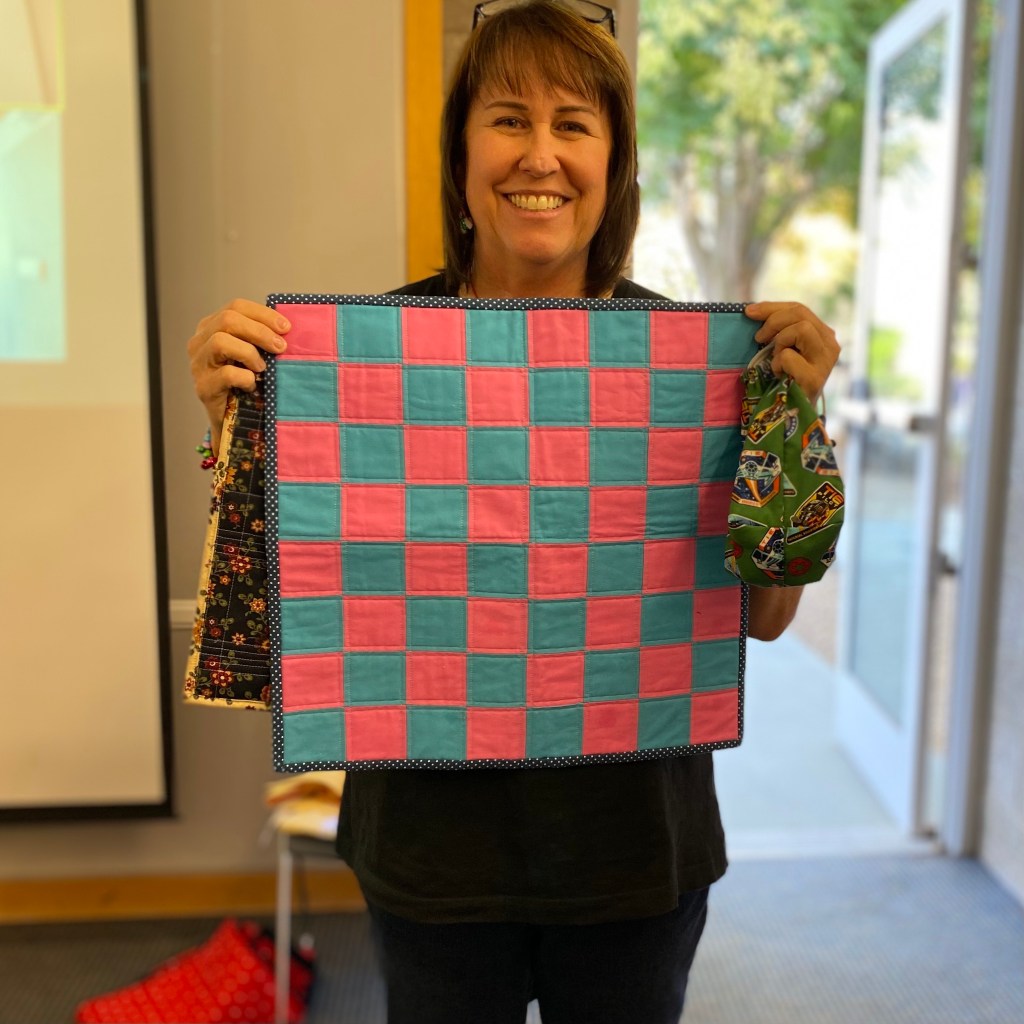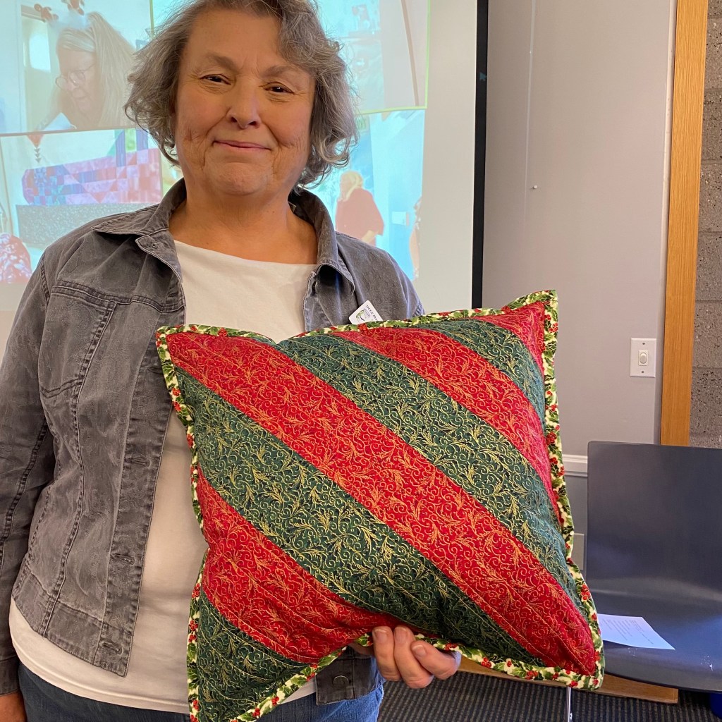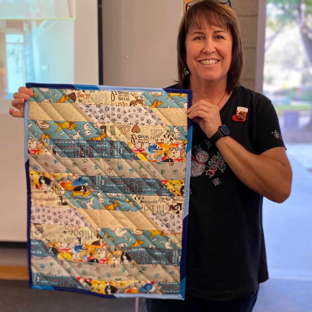 Did you make it to our December meeting? We sure had a good time! We had our Mini Minimalism Challenge Reveal, Our Opportunity Quilt drawing, Show and Share and so many important announcements! Keep reading for all the details and beautiful photos because you don’t want to miss a thing!