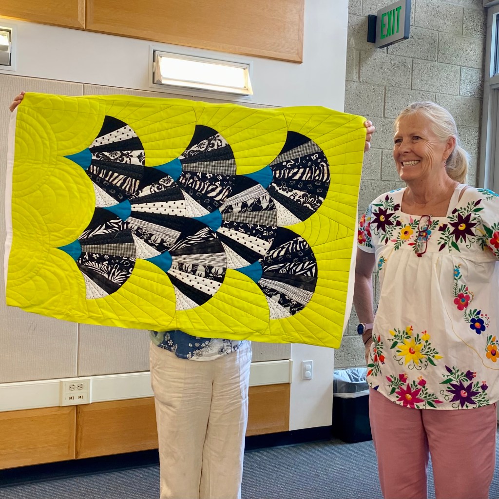 We kicked off July with a fantastic meeting filled with inspiration and beautiful quilts starting with our Modern Wedge Challenge reveal, moving into a colorful show and share, and wrapping it up with a temperature quilt presentation that got us all thinking about starting our own temperature quilt. All the fun was interspersed with lots of updates and important dates to remember, so to get caught up, be sure to read all the way to the end for Block-of-the-Month and Important Announcements.