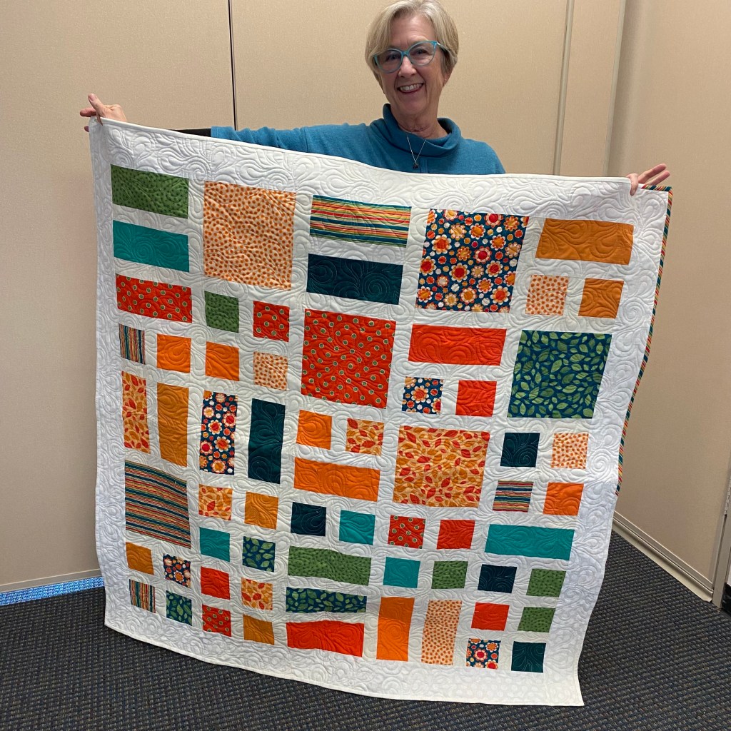We had a very well attended January meeting. What a great way to begin the new year! Our president, Candy Scott started the meeting off with some important announcements. She was followed by an introduction to our 2023 Block of the Month program by member, TriciaWilliams. Next we saw many fantastic show and share items from our talented members. Program Vice President’s Laura Green and Jennifer Boling wrapped it up with a fun, informative, and interactive workshop on modern wedges. Following the workshop they announced our first challenge of 2023 – the Modern Wedge Challenge!