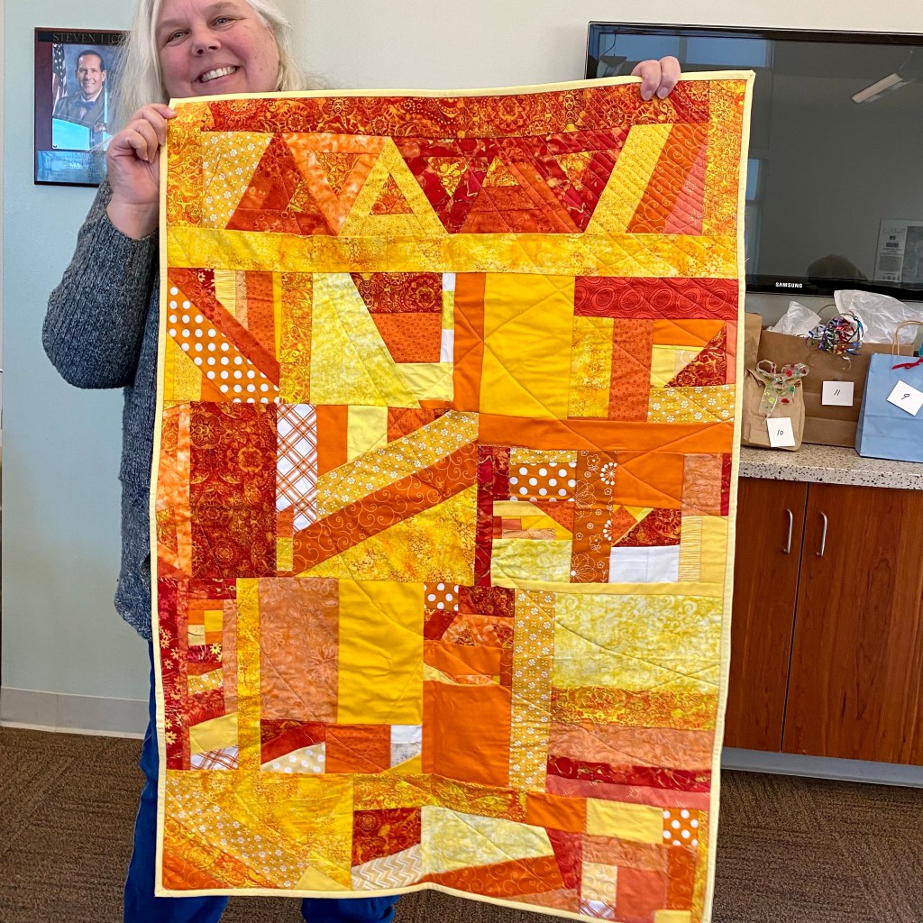 Thank you to all of our wonderful members who attended our December meeting/holiday party and contributed to all the fun and fanfare. We started the meeting with a few important announcements, followed by a great chili potluck with plenty of sweet treats. We had our Orphan Block Reveal and Show and Share. We played Bad Santa where each member was able to win (or steal) a generous sewing gift, and we chose a name for our 2023 QuiltCon community Outreach Quilt. Please read on for all the details!